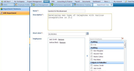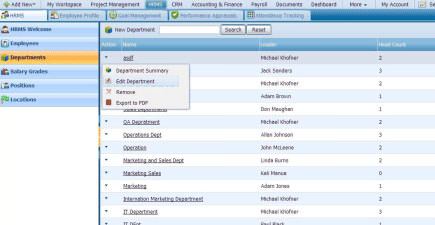The Department section helps you keep record information regarding the departments of your organization including details about the department leaders and number of employees in it.