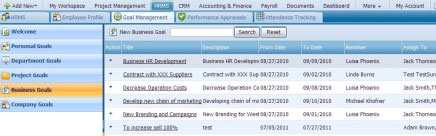 - Goal Management section gives you information on the various goals set by the company administration.