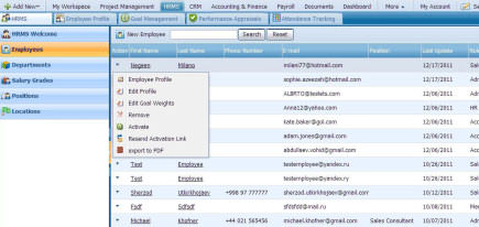 By default the Action dropdown is available on the first column of the Employees list. Once clicked, dropdown gives several options as displayed on the screenshot: