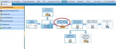 The Payroll Welcome is set as a default page. You are be able to perform several functions as setting up an employer, adding new starter, making payment and viewing form & reports.